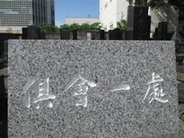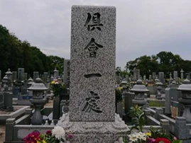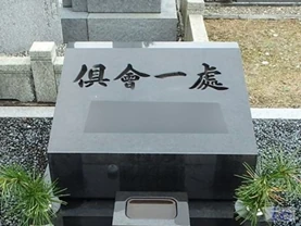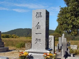 鹿児島では見かけることが少ないのですが、浄土真宗のご門徒さんが多いといわれる地域では、お墓の正面に「倶会一処(くえいっしょ・ともにひとつのところで会うという意味です)」と刻んである墓石をよく見かけます。(上の写真はその一例です)
