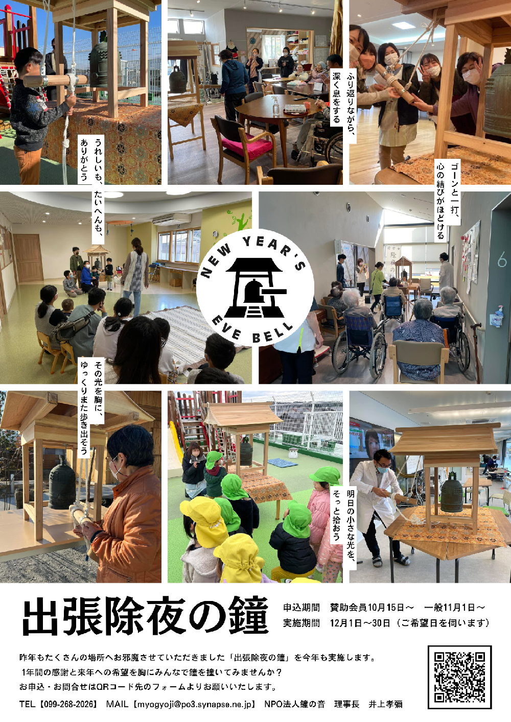 昨年もたくさんの施設にお邪魔させていただきました出張除夜の鐘、今年も実施いたします。1年間の感謝と来年への希望を胸に鐘を撞いてみませんか?